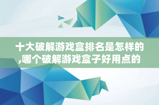 以上内容就是关于哪个破解游戏盒子好用点的的问题**解答了,如果对你有所帮助的话,请收藏关注本站,这里将更新更多关于哪个破解游戏盒子好用点的的内容。