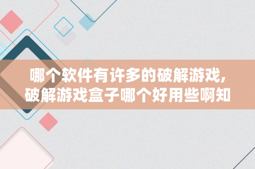 哪个软件有许多的破解游戏,破解游戏盒子哪个好用些啊知乎