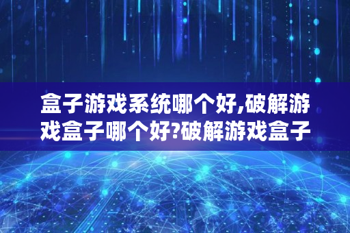 盒子游戏系统哪个好,破解游戏盒子哪个好?破解游戏盒子排行榜