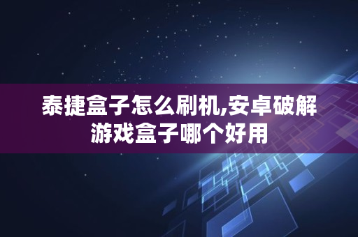 泰捷盒子怎么刷机,安卓破解游戏盒子哪个好用