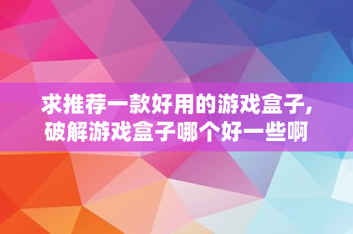 求推荐一款好用的游戏盒子,破解游戏盒子哪个好一些啊