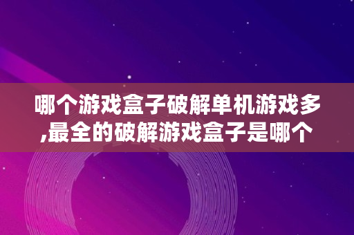 哪个游戏盒子破解单机游戏多,最全的破解游戏盒子是哪个软件的