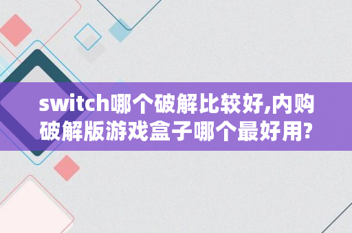 switch哪个破解比较好,内购破解版游戏盒子哪个最好用?