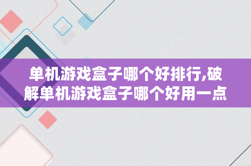 单机游戏盒子哪个好排行,破解单机游戏盒子哪个好用一点的