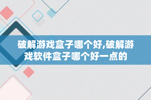 以上内容就是关于破解游戏软件盒子哪个好一点的问题**解答了,如果对你有所帮助的话,请收藏关注本站,这里将更新更多关于破解游戏软件盒子哪个好一点的内容。