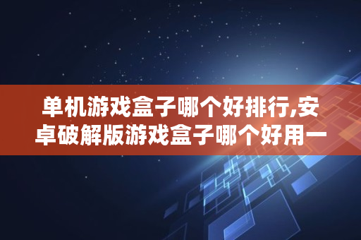 单机游戏盒子哪个好排行,安卓破解版游戏盒子哪个好用一点的