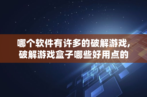 哪个软件有许多的破解游戏,破解游戏盒子哪些好用点的