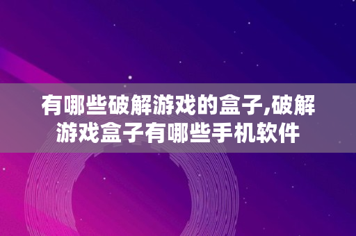 有哪些破解游戏的盒子,破解游戏盒子有哪些手机软件