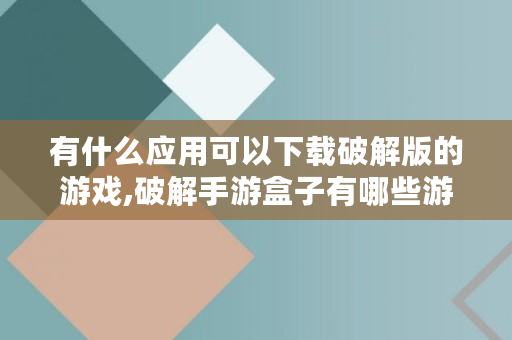 有什么应用可以下载破解版的游戏,破解手游盒子有哪些游戏软件