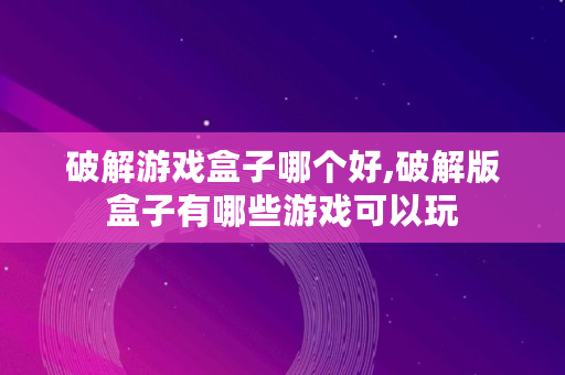 以上内容就是关于破解版盒子有哪些游戏的问题**解答了,如果对你有所帮助的话,请收藏关注本站,这里将更新更多关于破解版盒子有哪些游戏的内容。