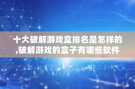 以上内容就是关于破解游戏的盒子有哪些软件的问题**解答了,如果对你有所帮助的话,请收藏关注本站,这里将更新更多关于破解游戏的盒子有哪些软件的内容。