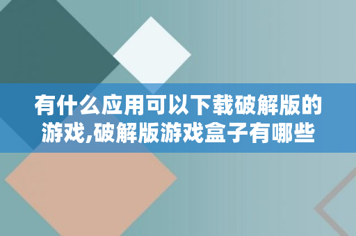 有什么应用可以下载破解版的游戏,破解版游戏盒子有哪些6.2.0