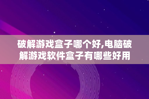 破解游戏盒子哪个好,电脑破解游戏软件盒子有哪些好用