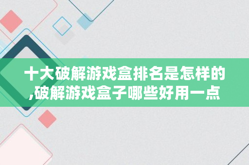 以上内容就是关于破解游戏盒子哪些好用一点的问题**解答了,如果对你有所帮助的话,请收藏关注本站,这里将更新更多关于破解游戏盒子哪些好用一点的内容。