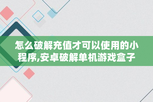 怎么破解充值才可以使用的小程序,安卓破解单机游戏盒子软件有哪些好用