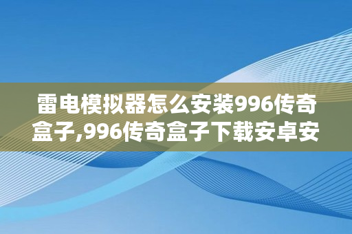 雷电模拟器怎么安装996传奇盒子,996传奇盒子下载安卓安