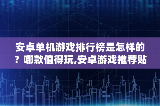 安卓单机游戏排行榜是怎样的?哪款值得玩,安卓游戏推荐贴吧