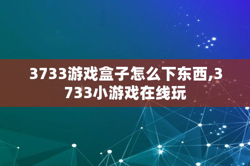 3733游戏盒子怎么下东西,3733小游戏在线玩
