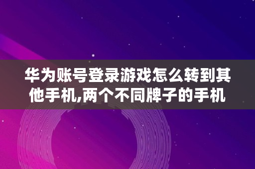 华为账号登录游戏怎么转到其他手机,两个不同牌子的手机怎么换机