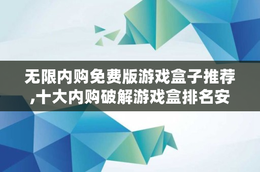 以上内容就是关于十大内购破解游戏盒排名的问题**解答了,如果对你有所帮助的话,请收藏关注本站,这里将更新更多关于十大内购破解游戏盒排名的内容。