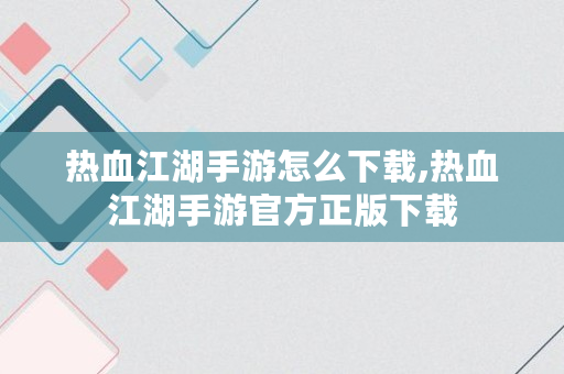 热血江湖手游怎么下载,热血江湖手游官方正版下载