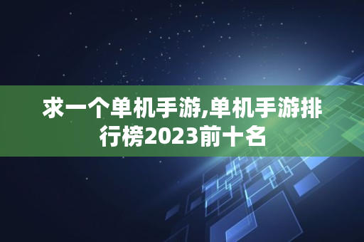 求一个单机手游,单机手游排行榜2023前十名