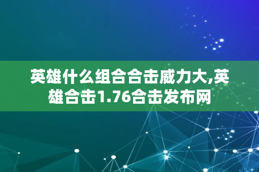 英雄什么组合合击威力大,英雄合击1.76合击发布网