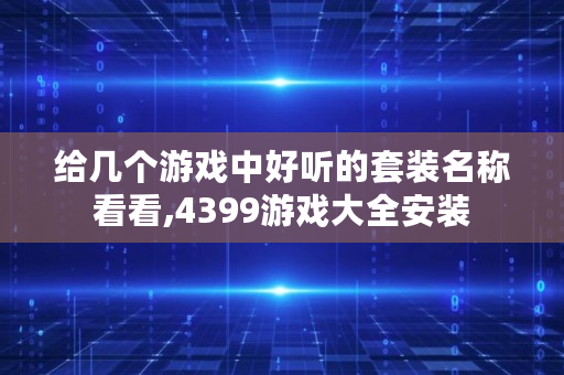 给几个游戏中好听的套装名称看看,4399游戏大全安装