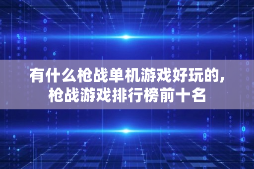 有什么枪战单机游戏好玩的,枪战游戏排行榜前十名