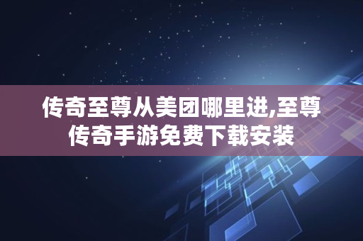 传奇至尊从美团哪里进,至尊传奇手游免费下载安装