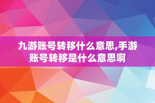 九游账号转移什么意思,手游账号转移是什么意思啊