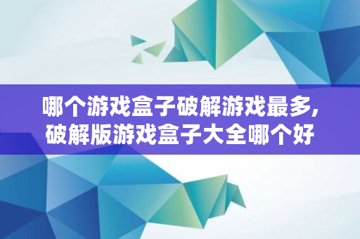 哪个游戏盒子破解游戏最多,破解版游戏盒子大全哪个好