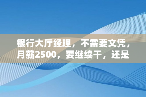 银行大厅经理,不需要文凭,月薪2500,要继续干,还是重新找工作