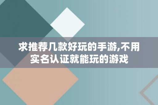 求推荐几款好玩的手游,不用实名认证就能玩的游戏