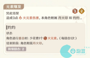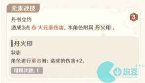 造成3点6火元素伤害,本角色附属丹火印和灼灼。