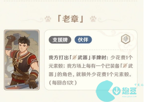 我方打出「武器」手牌时:少花费1个元素骰;我方场上每有一个已装备「武器」的角色,就额外少花费1个元素骰。(每回合1次);