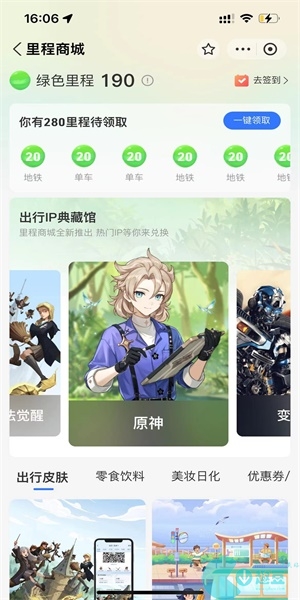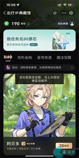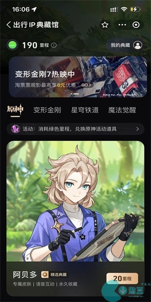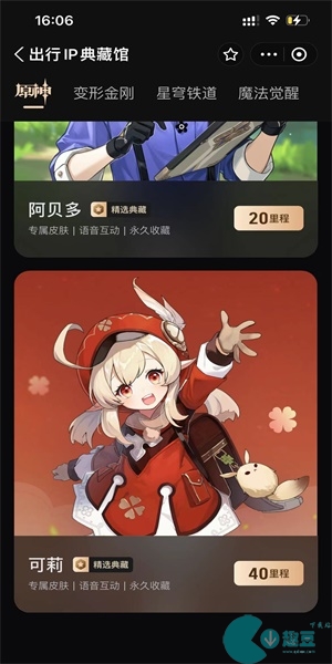 5、我们还可以通过在出行IP典藏馆页面下方的做任务当中,积攒到更多的里程来获得到更多的原神道具奖励、