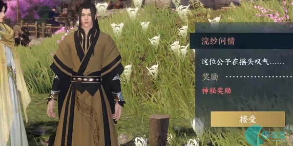 7、我们这边是需要根据前面的剧情来进行选择的,如果我们选择别的姑娘之后我们后续的剧情需要选择林大哥的(前面如果选择的是依霜后续剧情是可以选择晁白的)和依霜对话结束之后奇遇任务浣纱问情就可以完成了;