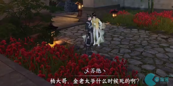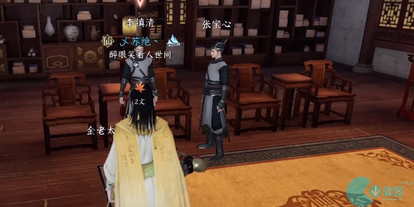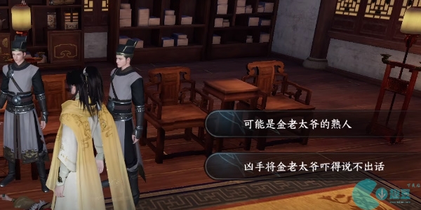 7、和陈德风交流完之后我们需要往**走去,我们走着会发现身边有人出现(这段都是剧情大家直接跟着过就可以),这个人正是白大哥,然后我们再次进入对话剧情,结束后,我们需要来到大厅调查金老太爷的死因;