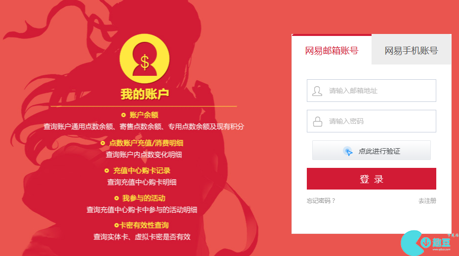 2、我们点击进入后,使用你的网易游戏账号登录进入后,就可以轻松的查询到自己的点卡余额了。