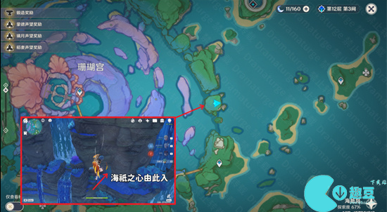 提示:海祇之心处的键纹从这里进。