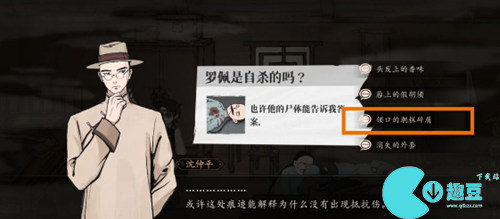 3、这边我们拿到尸体之后需要把尸体检查一下,我们只要使用放大镜就可以了哦,这边的尸体可以检查出来6个要点。