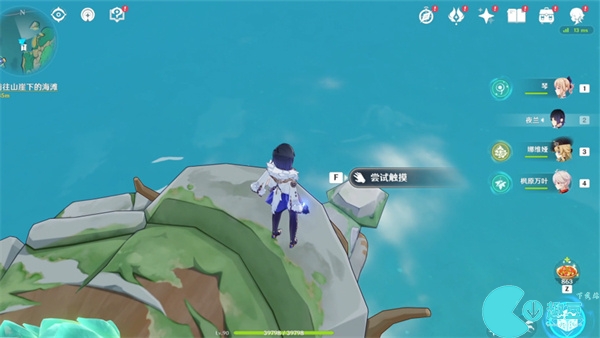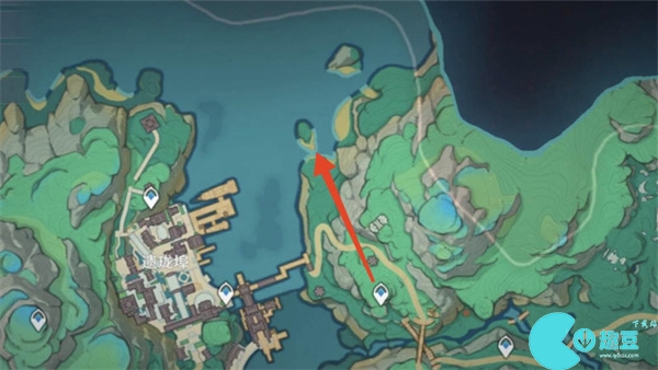 1、首先玩家需要传送到遗珑埠东侧锚点,前往下图箭头标识的小岛。