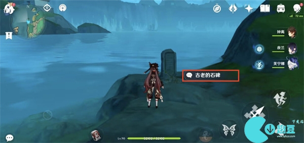 2、接着上岸后在海边看见古老的石碑点击进行阅读。