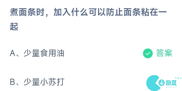 煮面条时,加入什么可以防止面条粘在一起?答:少量食用油。小伙伴们早上好呀,今天又到时间给我们涨涨知识点了哦,不知道小伙伴们的庄园小课堂的问答题的小活动有没有刷完呢,那么今天小伙伴们就跟大家讲解一下明天9月19日的庄园小课堂的答案吧。
