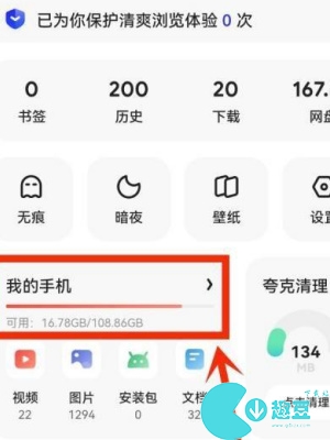 1、进入夸克APP后,点击右下角三条横杆的标志来到个人信息界面,找到”我的手机”选项点击进入。