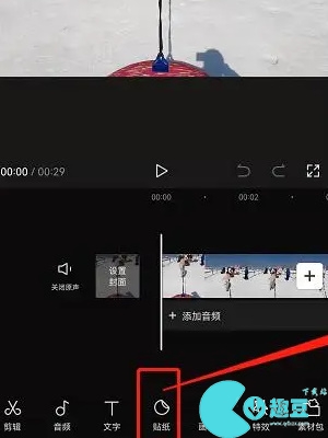 2、点击创作界面下方的贴纸选项,会出现搜索框在搜索框中输入马赛克进行搜索。