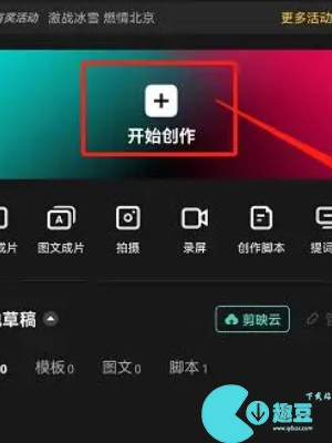 1、大家首先打开剪映APP后点击创作,,进入创作界面。