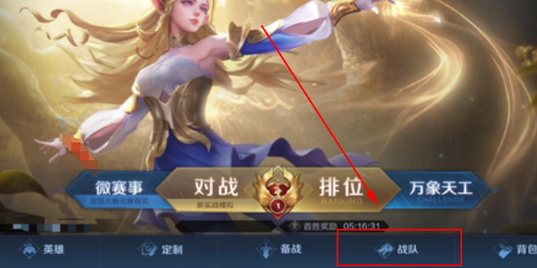 **步:进入王者荣耀后,点击屏幕底部的战队选项进入战队界面。