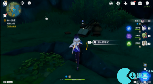 4、找到小路了之后就可以进入山洞啦,进入山洞了以后要记得调查一下山洞,然后就可以开始阅读"谁人的笔记"了。